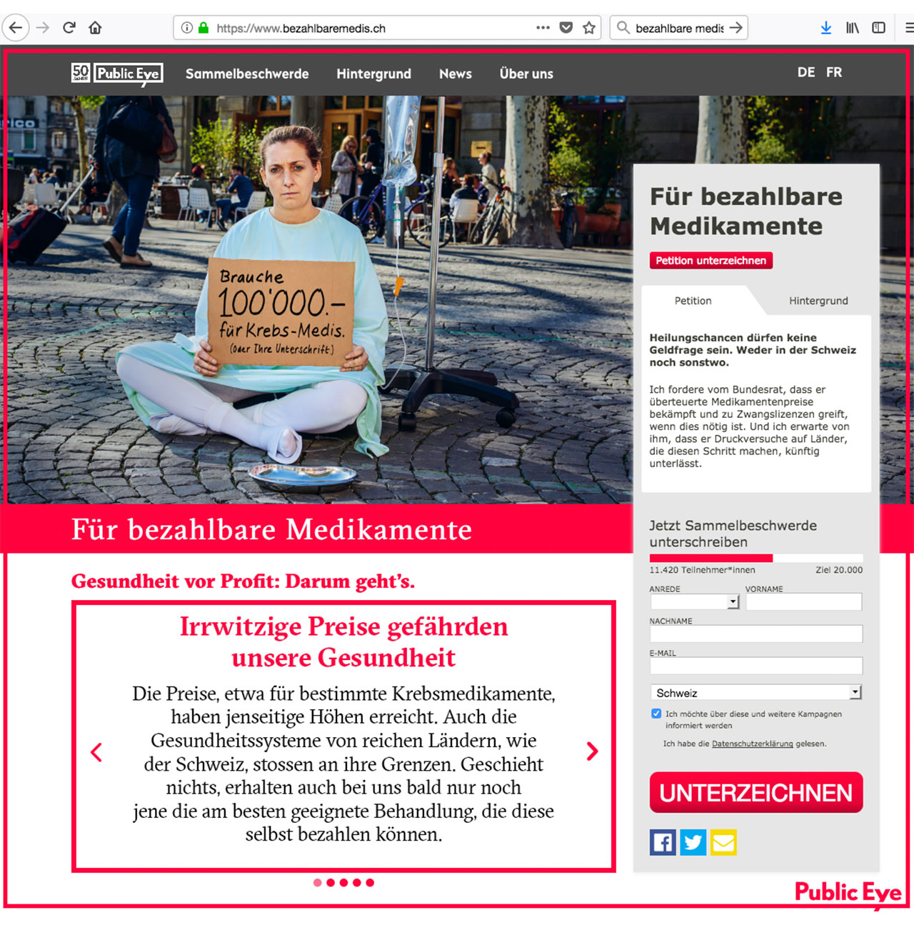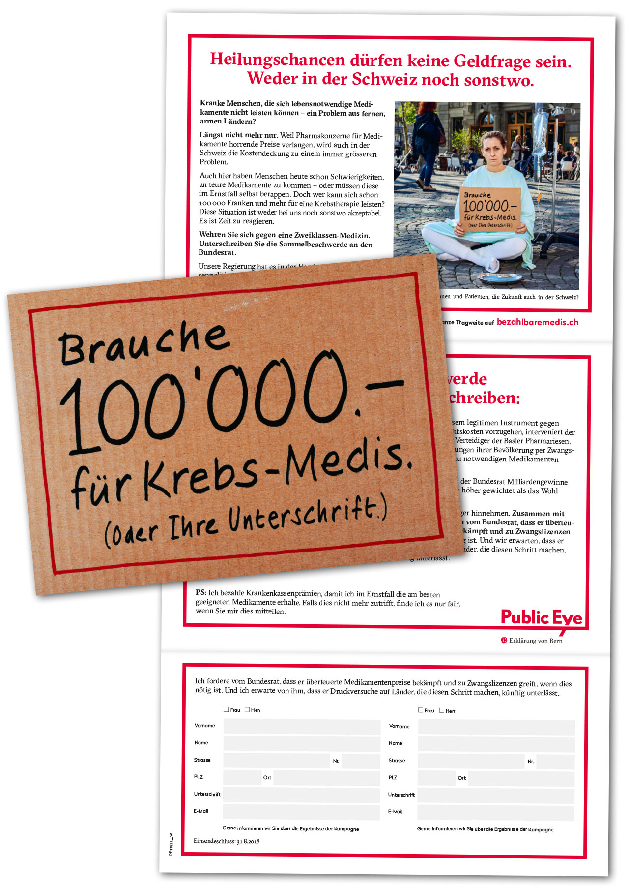 Irrwitzige Medikamentenpreise gefährden die Gesundheit. Um möglichst viele Unterstützer für die Sammelbeschwerde zu aktivieren, haben wir im Auftrag von Public Eye eine 360° Kampagne entwickelt.